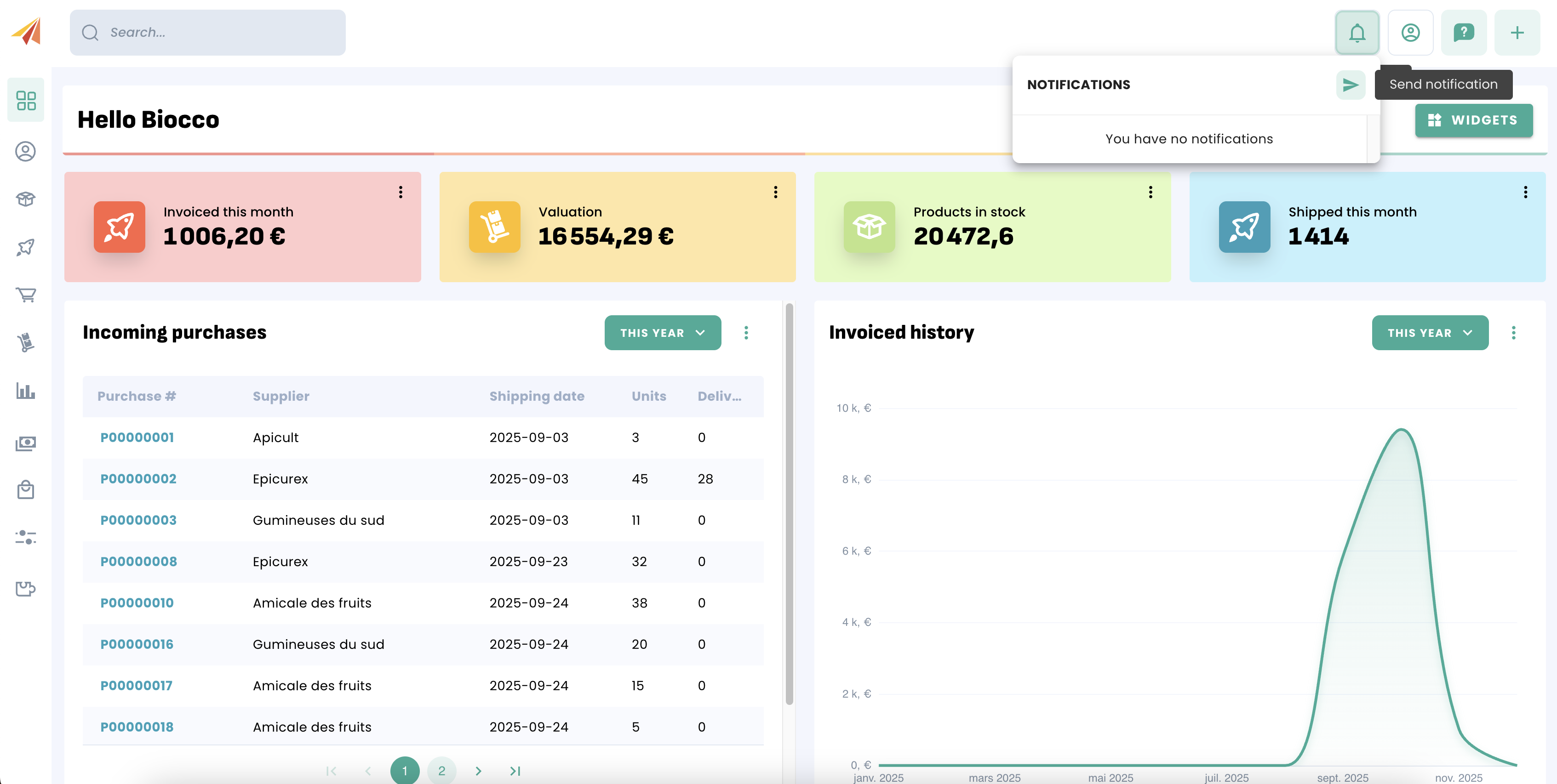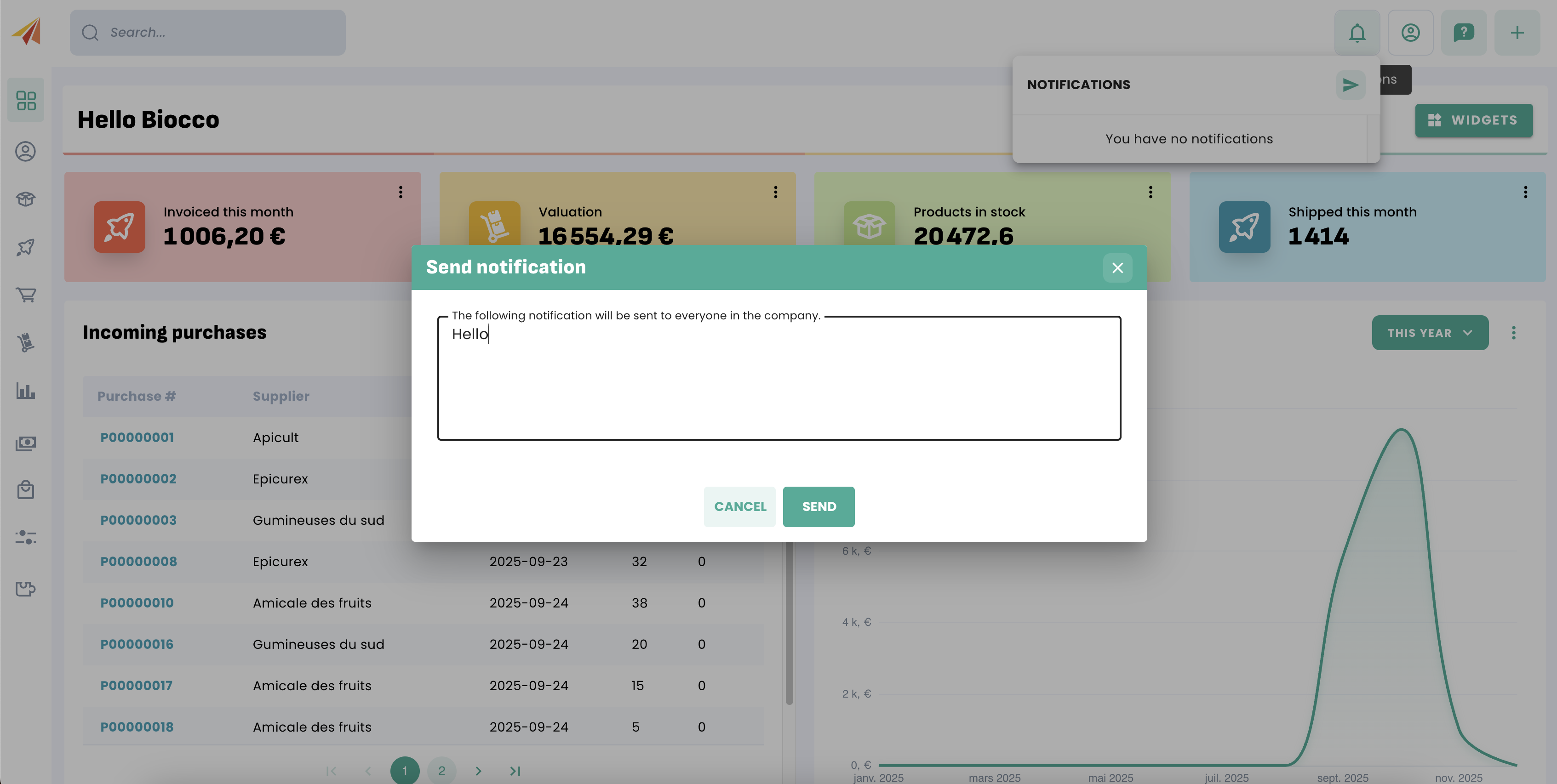 You can send internal notifications to your team in Erplain.