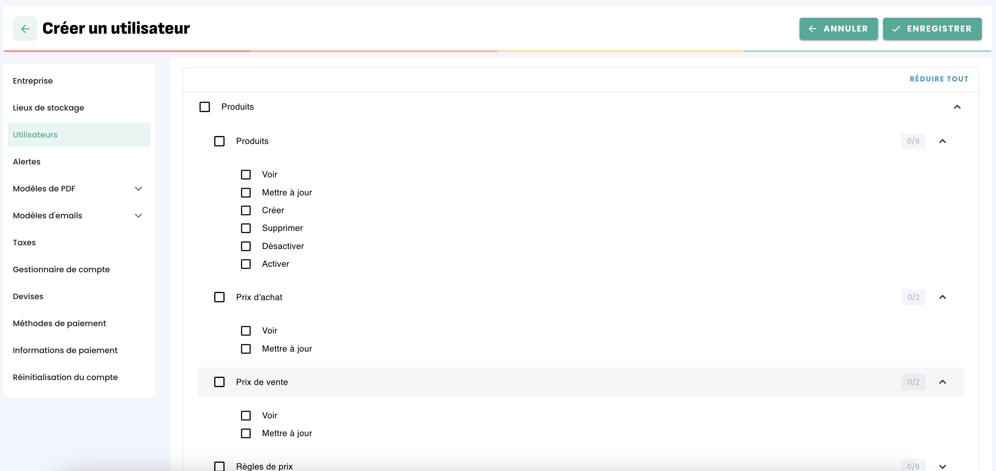Les accès utilisateurs ont été retravaillés, afin de vous permettre une gestion granulaire des différentes permissions pour vos équipes. Vous pouvez maintenant dicter dans le détail à quelles sections vos utilisateurs ont accès mais surtout, les actions qu’ils peuvent entreprendre.